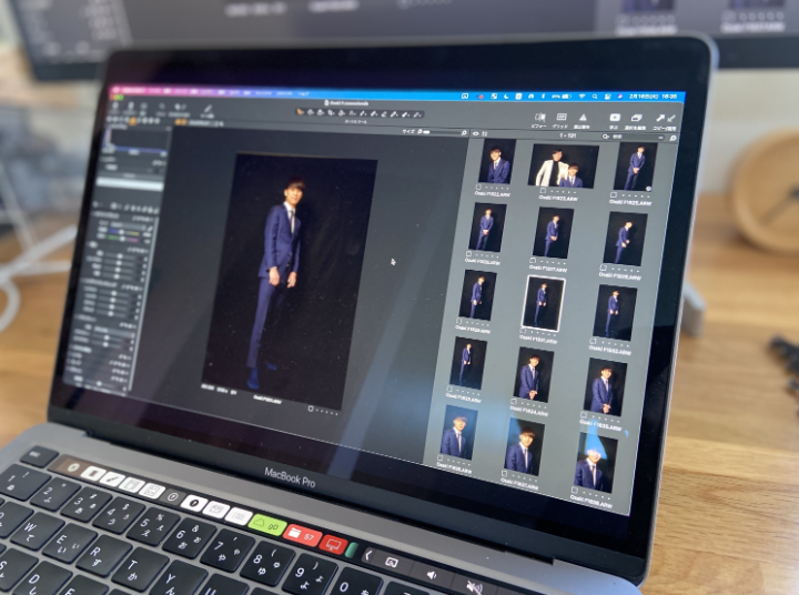 ③撮影された写真はその場ですぐパソコン画面で確認できます。お気に入りのカットを何点かセレクトしていただきます。